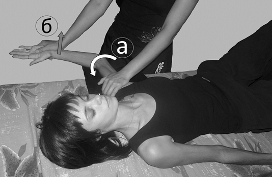 Рис. 145. Аутомобилизация внутренних ротаторов плеча в положении лёжа на